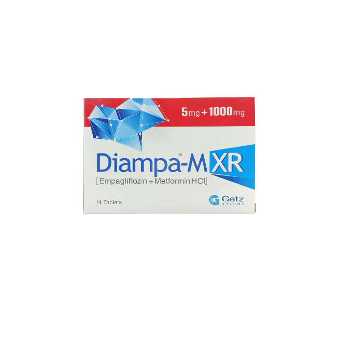 Diampa MXR 5+1000mg tablet contains a combination of two medications: Empagliflozin and Metformin HCI. This combination is used to manage type 2 diabetes mellitus. Empagliflozin belongs to a class of drugs called sodium-glucose co-transporter 2 (SGLT2) inhibitors, while Metformin HCI is a biguanide medication. Empagliflozin works by helping the kidneys excrete glucose from the bloodstream, while Metformin HCI helps decrease glucose production in the liver and improves insulin sensitivity. Each Diampa MXR tablet contains 5mg of Empagliflozin and 1000mg of Metformin HCI.